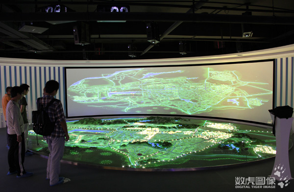 除了互動觸摸屏外,參觀者還可以通過城市發(fā)展投影沙盤,對濱州交通發(fā)展進(jìn)行全局的了解。沙盤通過實(shí)體模型、環(huán)幕與數(shù)字影像,立體展示濱州交通的總體規(guī)劃。數(shù)字展廳里還設(shè)有虛擬漫游廳,通過虛擬現(xiàn)實(shí)技術(shù)與立體影像,對現(xiàn)實(shí)世界進(jìn)行逼真的模擬再現(xiàn),讓參觀者在沉浸式環(huán)境中身臨其境地感受濱州的交通發(fā)展。